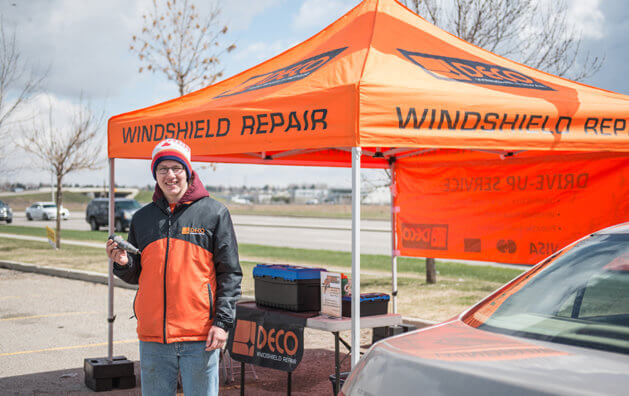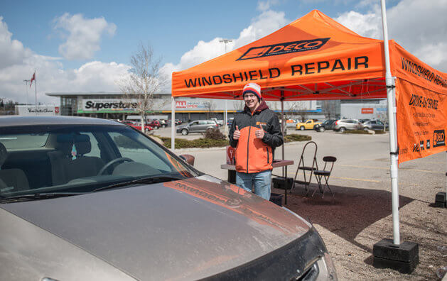 Specializing in autoglass repair, DECO Windshield Repair RCS Heritage Meadows provides fast, professional service for your windshield chip fix or rock chip repair. Our chip repair service saves you time, money and helps save your windshield from a trip to the landfill. Matt Horne founded DECO Windshield Repair so that he could fund his training and career with the Canadian Snowboard Team. Eventually DECO started hiring university and college students to operate the Orange Tent locations over the Spring and Summer months to help them save up for college tuitions, summer travels etc.